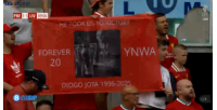 永远的20号若塔!利物浦球迷赛后高举若塔海报,高声歌唱悼念若塔